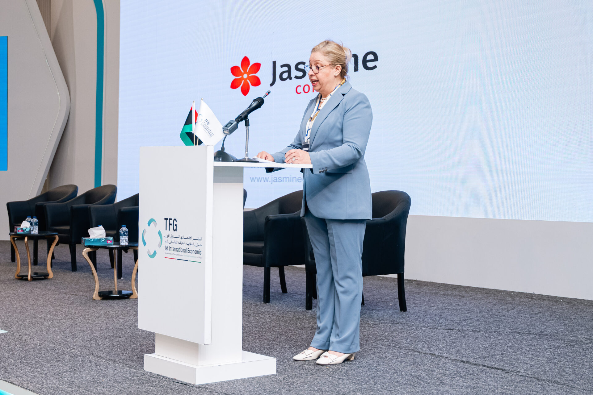 Jasmine Conseil est fière d’avoir pris part, en tant que sponsor stratégique, à la Première Conférence Économique Internationale dédiée à la Transparence et à la Gouvernance Financière en Libye, organisée à l’Hôtel Rixos à Tripoli du 11 au 13 avril 2026.